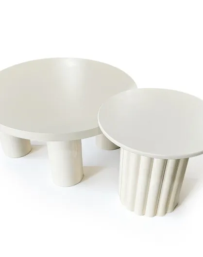 2 Couchtische mit cremefarbenem Standfuß im Storia-Säulenstil