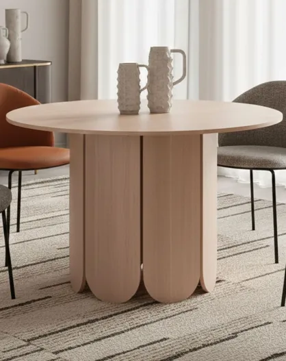 Ausziehbarer runder Tisch Tulipa im Japandi-Stil mit integrierten Verlängerungen - helles Holz - 110x110x76 cm