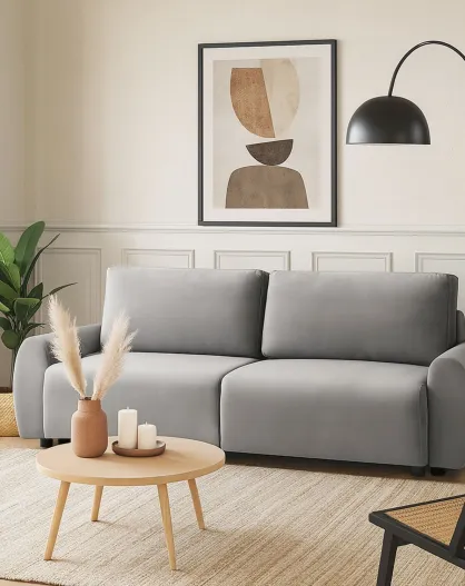 Traviata 3-Sitzer-Schlafsofa aus grauem Samt - 251x90x86 cm
