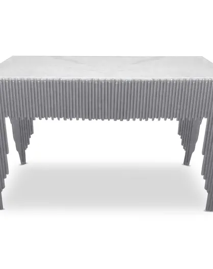 Galantinische Designkonsole aus weißem Marmor mit silbernen Beinen - 106,5x40 5x75,5 cm