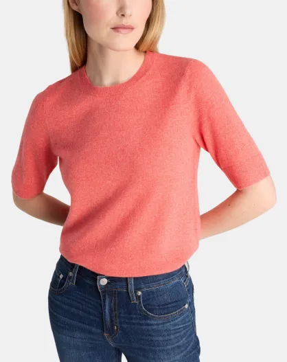 Kurzärmliger korallenroter Kaschmirpullover Difi