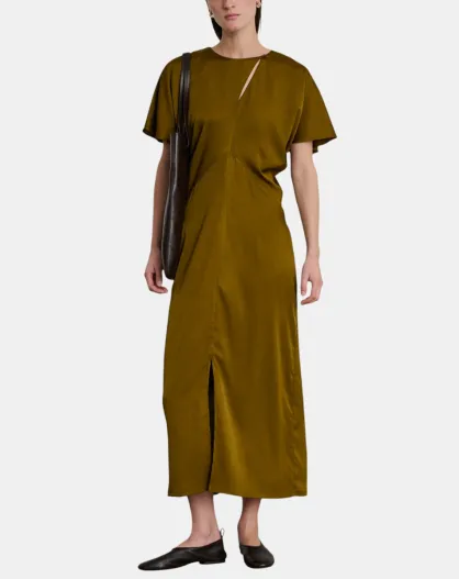 Langes Kleid Ella aus bronzefarbenem, fließendem Twill