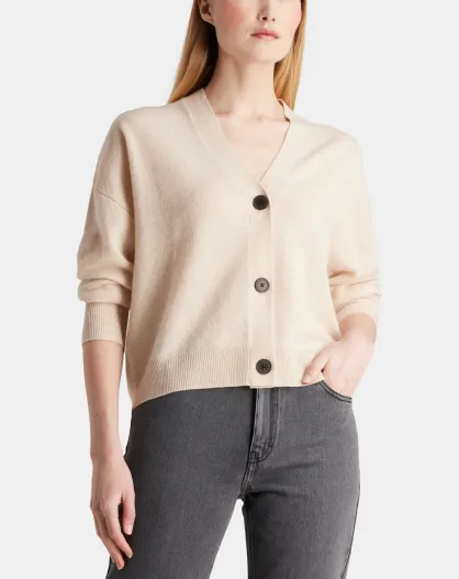 Kurzer Cardigan Tabiola aus hellbeiger, verantwortungsbewusster Wolle und Kaschmir