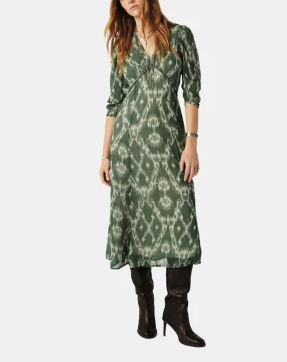 Matsa Midikleid in Khaki mit Grafikprint