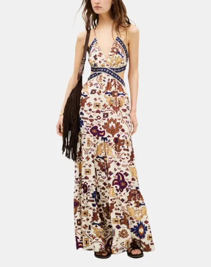 Gerade geschnittenes Kleid mit ecru-/mehrfarbigem Muster