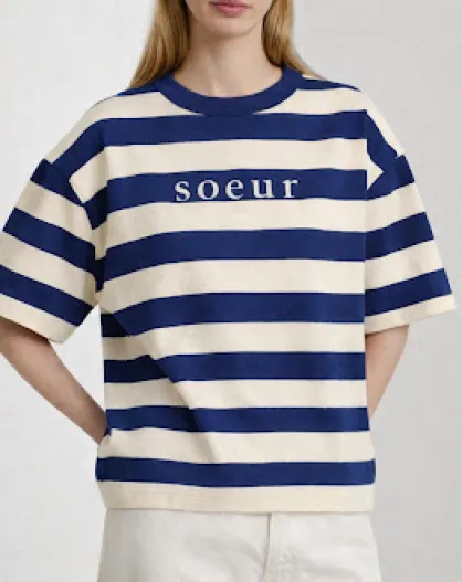 Adam locker sitzendes Matrosen-T-Shirt aus ecru/blauer Biobaumwolle
