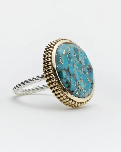 Ring aus Silber und Messing mit türkisfarbenem Kupfer