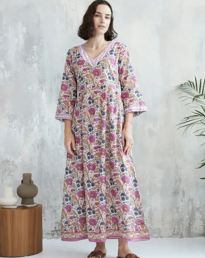 Celine-1 Baumwollkleid mit Batikmuster in Rosa