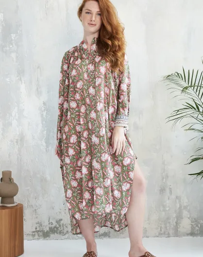 Tania-2 Baumwollkleid mit Batikmuster in Grün