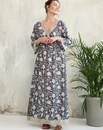 Celine- 3 Sommerkleid aus Baumwolle mit Batikmuster in Blau