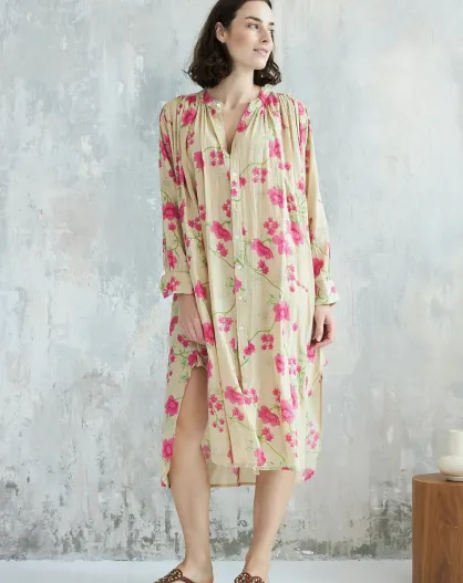Gartenbeiges Baumwollkleid Talula-1 mit Rosenmotiv