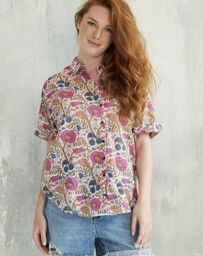 Donie-1 Baumwollhemd im Sommer-Batikdesign in Rosa