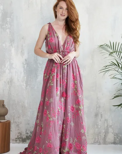 Violettes Baumwollkleid Aiyana-2 Roses Garden