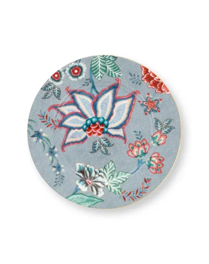 6 hellblaue Brotteller „Flower Festival“, 17 cm