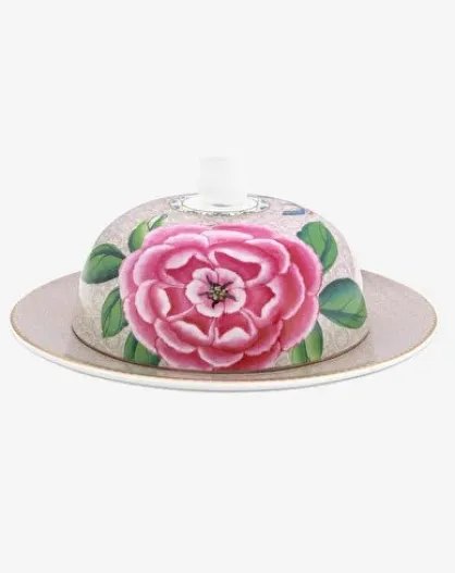 Butterdose, rund, Blushing Birds, khaki, 17 x 8 cm