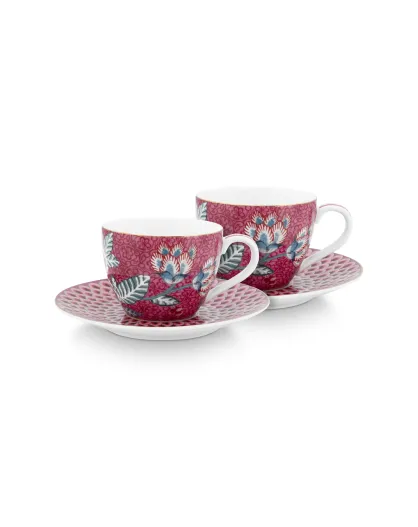Set mit 2 Paar rosafarbenen Flower Festival Kaffeetassen — 120 ml