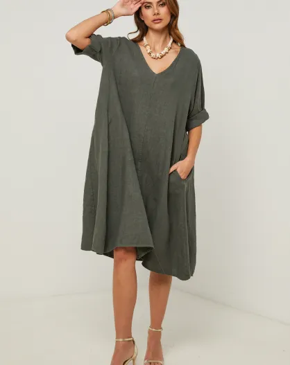 Khakifarbenes Leinenkleid Galinia