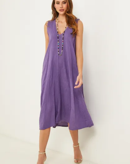 Lilafarbenes Leinenkleid Merkiel