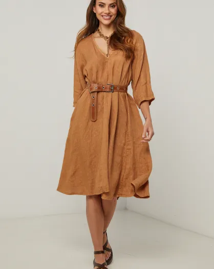 Kamelfarbenes Leinenkleid Madone