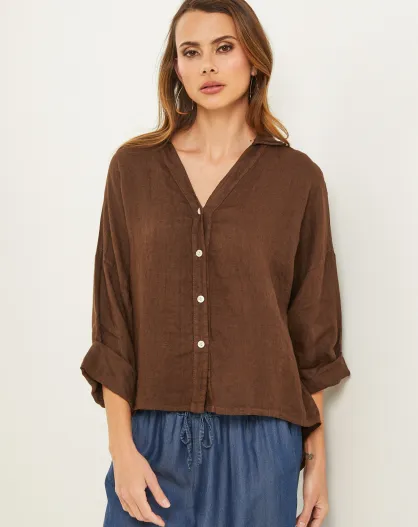 Iloine Leinenhemd in Schokolade