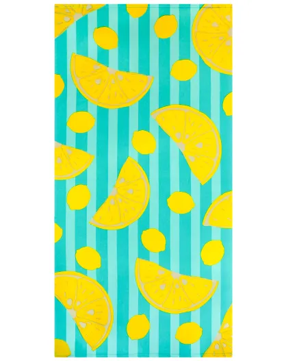 Pop-Citron Blaues Mikrofaser-Strandtuch - 75x150 cm