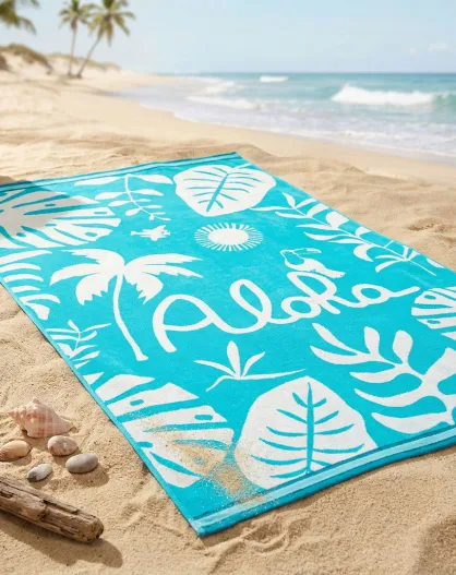Floresta Badetuch aus Jacquard-Samt, Frottee, 100 x 175 cm, Blau