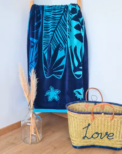 Rada Badetuch aus blauem Jacquard-Samt, Frottee, 90 x 170 cm