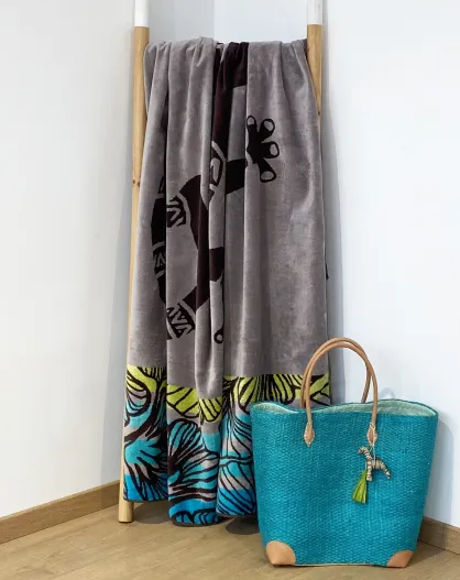 XL Badetuch aus Samtschwamm Jacquard Lazare Bleu - 140x180 cm