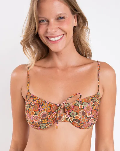 Mehrfarbiges Balconnet-Bikinioberteil mit Krawatte