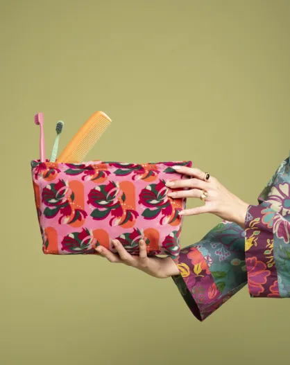 Samtbeutel aus rosafarbener Baumwolle, 36 x 19 x 13 cm