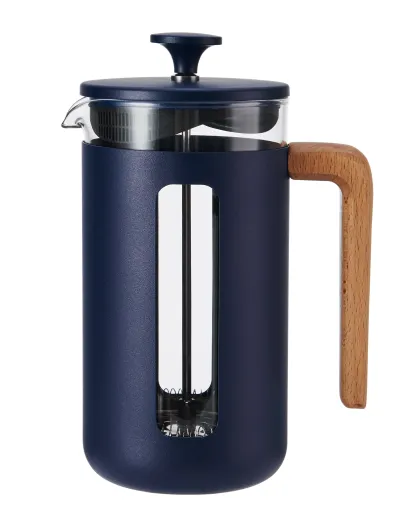 LC Pisa French Press Kaffeemaschine für 8 Tassen mit marineblauem Holzgriff, 14,5 x 10 x 21 cm