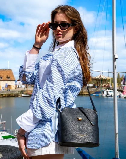 Elise schwarze Schultertasche aus Leder - 22x23x13 cm