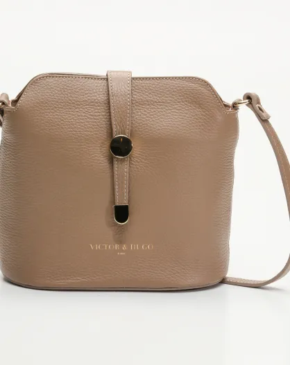 Elise Schultertasche aus helltaupefarbenem Leder - 22x23x13 cm