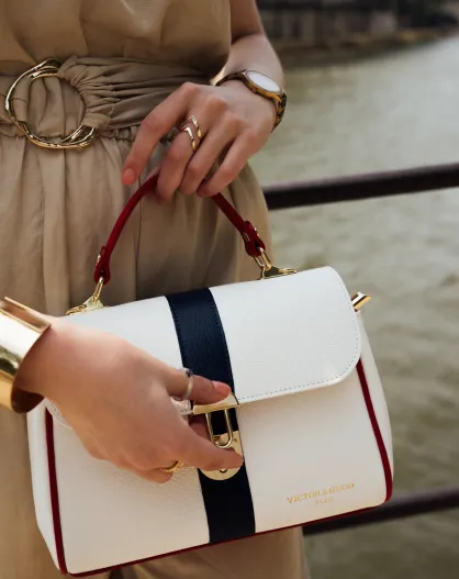 Giverny Lederhandtasche marineblau + weiß + rot - 26 x18 x10 cm