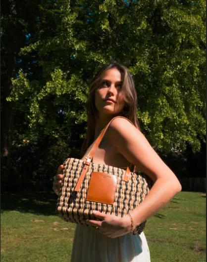 Azura Tragetasche aus Leder Cognac/Mehrbeige - 28 x 20 x 11 cm