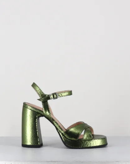 Plateausandalen aus grünem Leder mit 11 cm Absatz