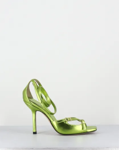 Grüne Sandalen aus Metallic-Leder mit hohem Absatz — 10 cm Absatz