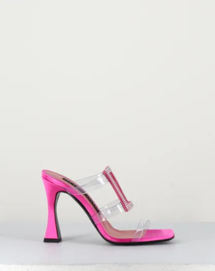 Rosafarbene Pantolettensandalen mit 10 cm Absatz