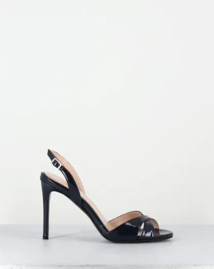 Mitternachtsblaue Ledersandalen mit hohem Absatz - 10 cm Absatz