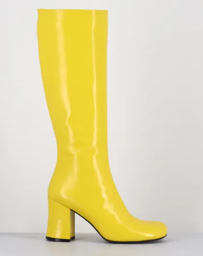 Gelbe Lederstiefel mit 7,5 cm Absatz