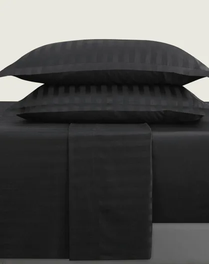 Bettlakenset aus gestreiftem Baumwollsatin Dobby schwarz + 180x200x30 cm + 2x (63x63 cm)