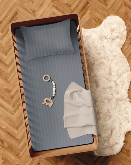 Bettbezug für Babys + Kissenbezug aus Baumwollsatin gestreifter Jacquard dunkelgrau - 100x135 cm + 40x60 cm