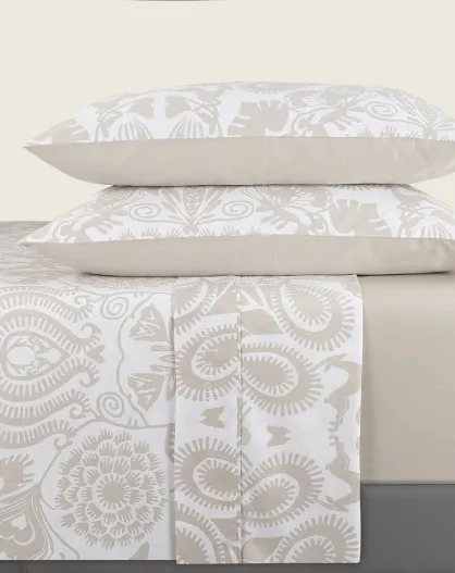 Love Stories Bettlaken-Set aus Baumwollsatin, 205 x 290 cm + 130/140 x 190/200 cm + 2 x (50 x 75/80 cm), taupefarben