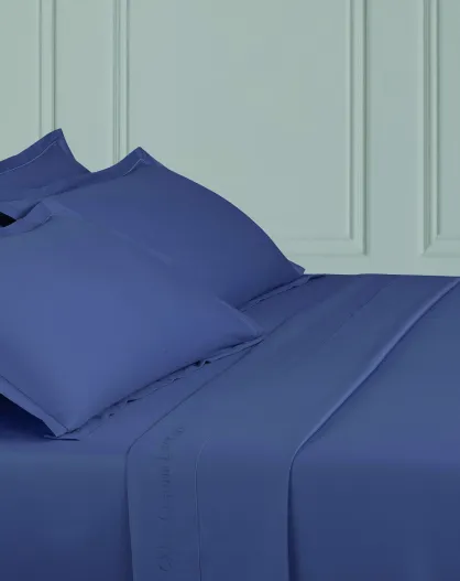 1 Baratta blaues schlichtes Bettlaken aus Baumwollsatin 06
