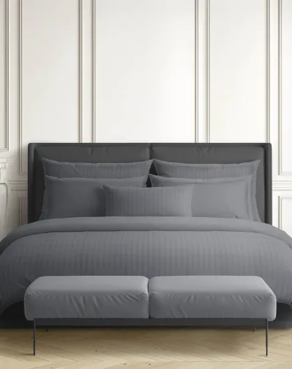 Dunkelgraues, gestreiftes Dobby-Bettlaken aus Baumwollsatin
