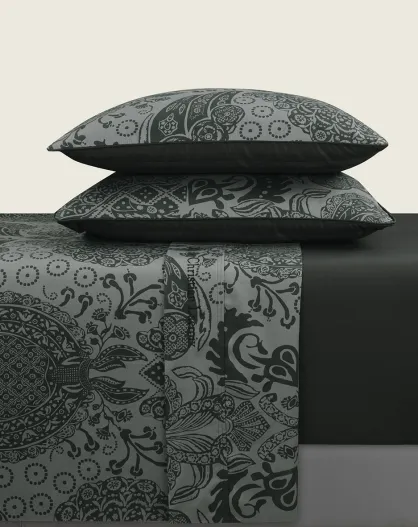 Bettlakenset Arles aus Baumwollsatin dunkelgrau + 180x200x30 cm + 2x (50x70 cm)