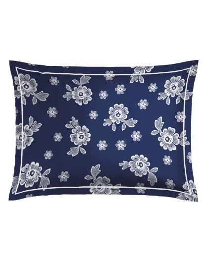 2 dunkelblaue Kissenbezüge Blossom aus Baumwollsatin, 50 x 70 cm